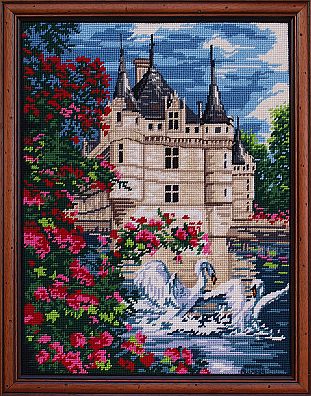 The Chateau with the swans was started at Christmas 2008 and completed just before Christmas 2009. It is 40cm wide and 50cm high and accounted for 44 skeins of wool.