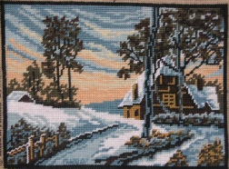 After that I finished off a very small (30cm by 22cm) one that Alison started and got bored with, which was completed in January. (Snow scene)