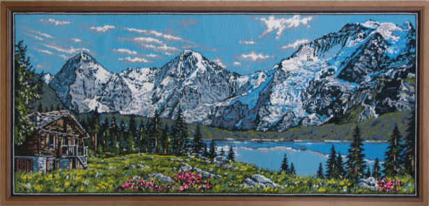 In December 2006 I finished the view of the Eiger Mountain which was started just after the sunset was finished. It is 130cm long and 65cm high, it contains 130,000 stitches, using about 1.1km of wool. (…and yes the units are correct). It took an estimated 260 hours of work which makes it the biggest that I had done so far.