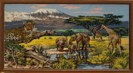 The owl was closely followed by this scene showing Mount Kilimanjaro in the background. It is 115 by 52 cm and was completed at Christmas 2008.